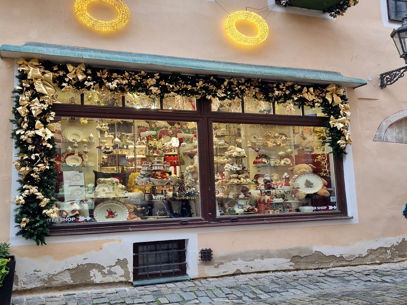 Gittiğimiz ay Aralık ayına yakın olduğu için, Cesky Kurumlov dükkanları ; Noel temalı ve küçük pencereli 🙂